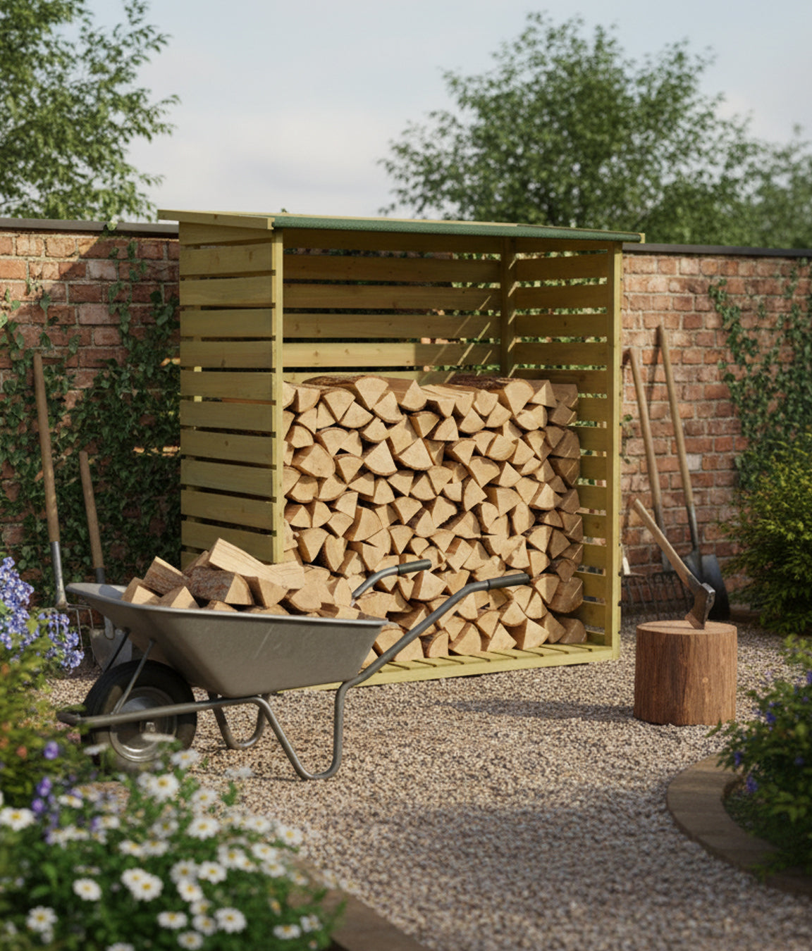 The Woodside Log Shed — crafted for strength, style, and year-round protection.