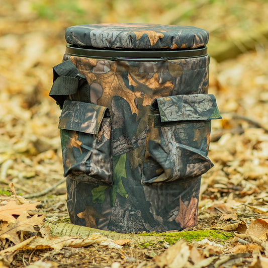 Nitehawk Spinning/Swivel Hunting Shooting Camo Bucket Seat With Storage Pockets