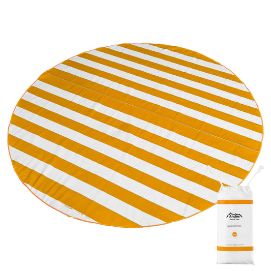 Andes Round Microfibre Sand Proof Beach Towel/Striped Picnic Rug Blanket 190cm