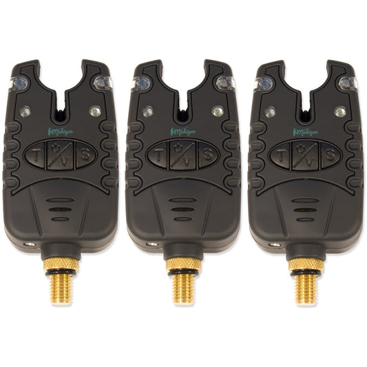 3 x Michigan Bite Alarm For Fish/Fishing Carp Pike Coarse Waterproof Nightlight