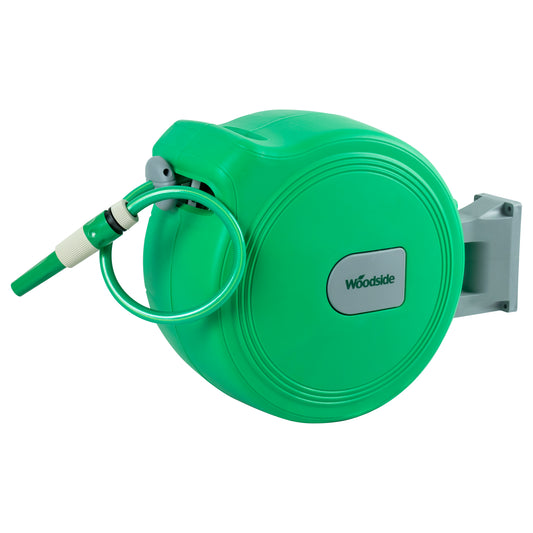 Woodside 30m Auto Rewind Retractable Wall Mounted Garden Hose Reel