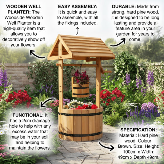 Woodside Wooden Ornamental Garden Plant/Flower Wishing Well Planter