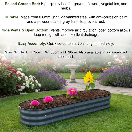 Woodside Galvanised Steel Raised Garden Planter Bed Kit for Flowers/Vegetables, Powder Coated Grey