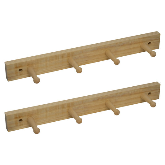 Woodside Wall Mounted Wooden Peg Rail, Coat/Hat/Bag/Towel Rack, Pack of 2