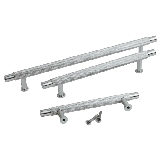 Hausen Chrome Knurled T-Bar Handle for Kitchen Cupboards, Cabinets, Drawers