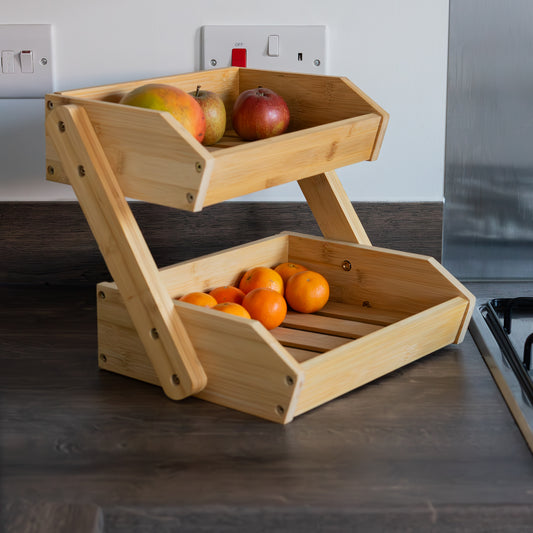 Woodside 2-Tier Bamboo Kitchen Fruit & Veg Rack Holder Wooden Storage Stand