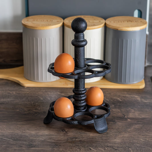 Woodside Cast Iron Dozen/12 Egg Rack Holder, Kitchen Egg Storage Stand Organiser