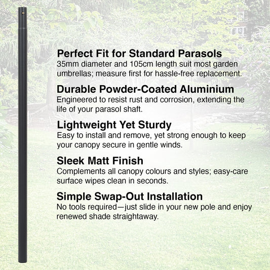Woodside 35mm Replacement Parasol Pole 105cm Powder Coated Aluminium Garden Umbrella