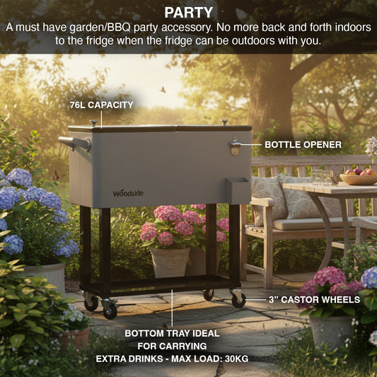 Woodside 76L Rolling House Party/BBQ Drinks Cooler, Cool Box Ice Bucket Cart