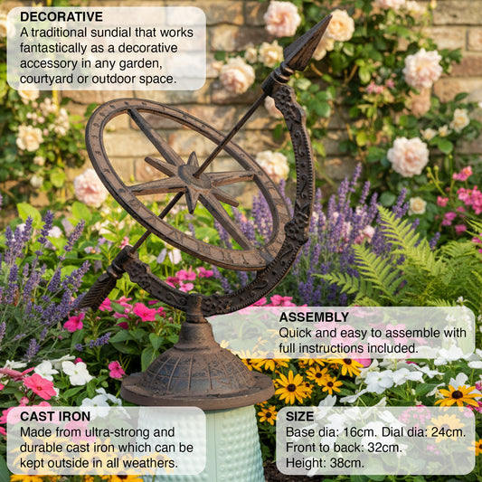 Woodside Decorative Cast Iron Traditional Antique Garden Table Sundial
