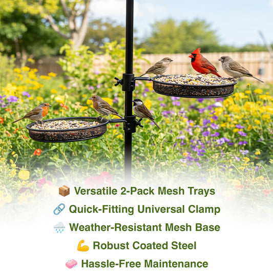 Woodside Mesh Bird Feeder Tray w/ Universal 22mm Pole Clamp Garden Seed/Nut Dish 2 Pack