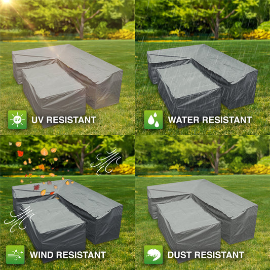Woodside Grey L Shape Outdoor Dining Waterproof Patio Set Cover Rattan