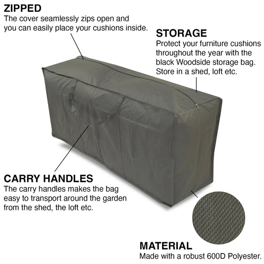 Woodside Garden Furniture Cushion Storage Bag Black Heavy Duty