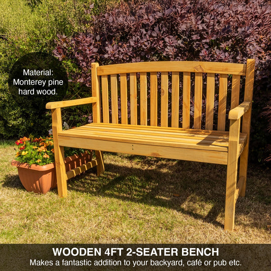 Woodside 2 Seater Garden Patio Bench, Outdoor Wooden Loveseat, Hard Pine Wood