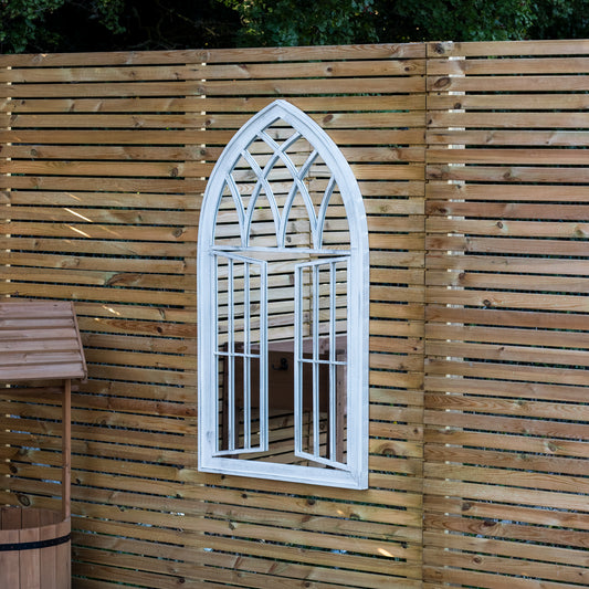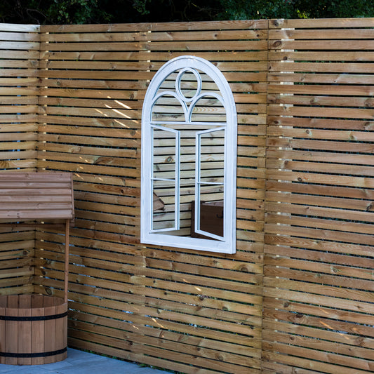 Woodside Oaken XL Decorative Arched Outdoor Garden Mirror, W: 65cm x H: 108cm