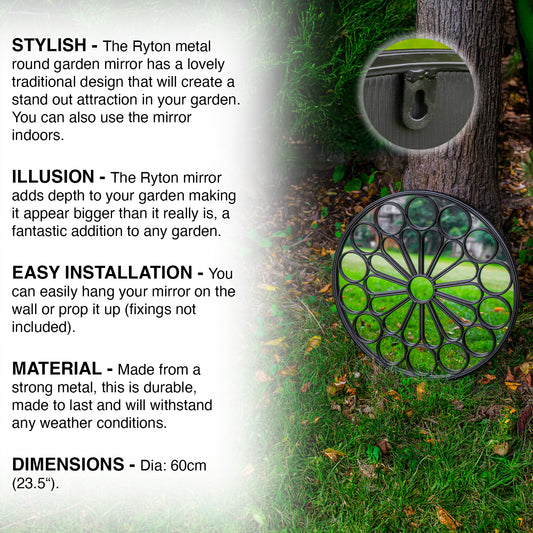 Woodside Ryton Decorative Round Outdoor Garden Mirror, Dia: 60cm