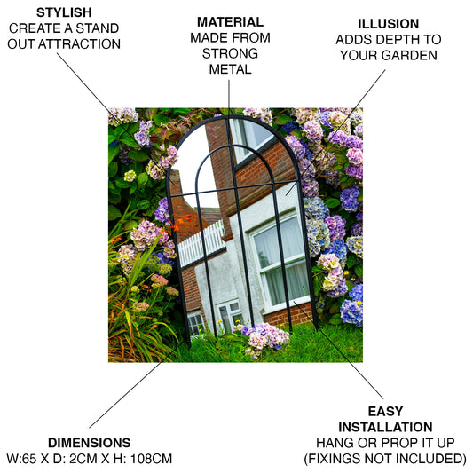Woodside Acton Large Decorative Arched Outdoor Garden Mirror, 66.5cm x 97.5cm