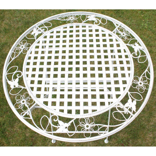 Maribelle Rustic White Floral Round Folding Outdoor Garden Patio Dining Table