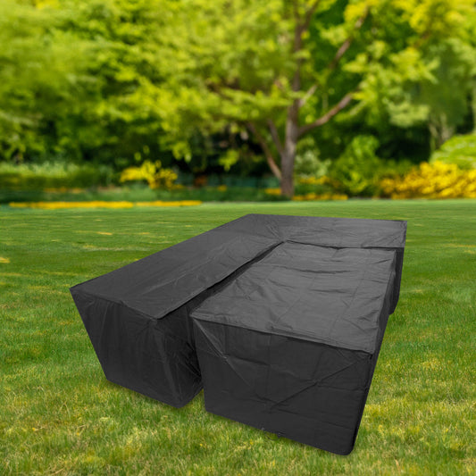 Woodside L Shape Outdoor Garden Corner Sofa & Table Dining Set Cover, Black