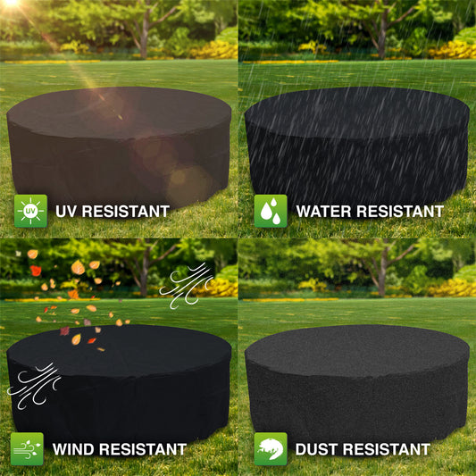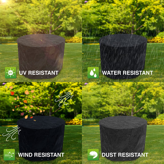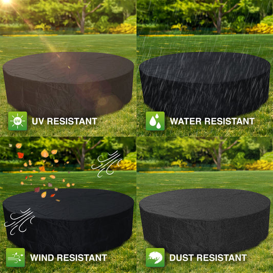 Woodside Black 8-10 Seater Round Garden Patio Furniture Set Cover Waterproof