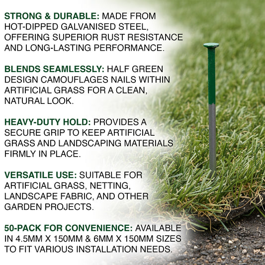 Woodside Half Green Heavy Duty Artificial Grass/Fake Lawn Nails – 50 Pack