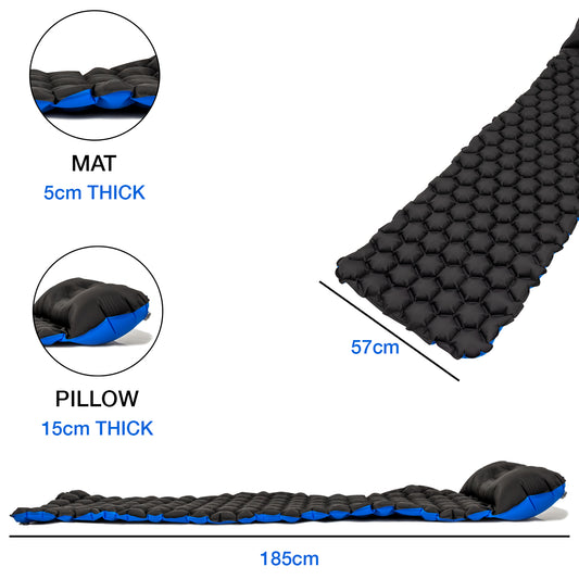 Andes Inflatable Lightweight Camping Hiking Travel Mat with Pillow Black/Blue
