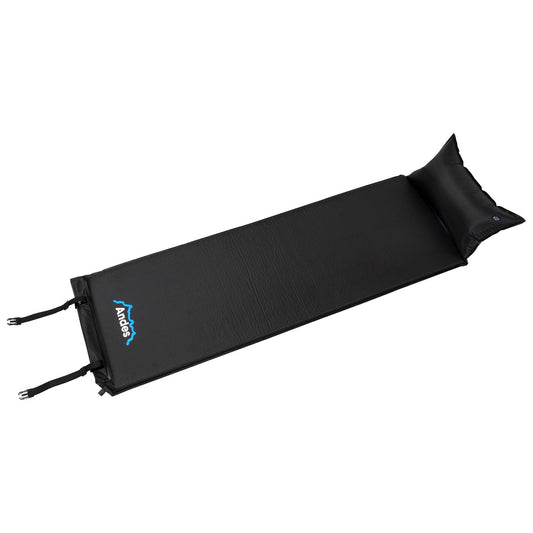 Andes Self Inflating Camping Travel Mat With Pillow Hiking Roll Mattress Black