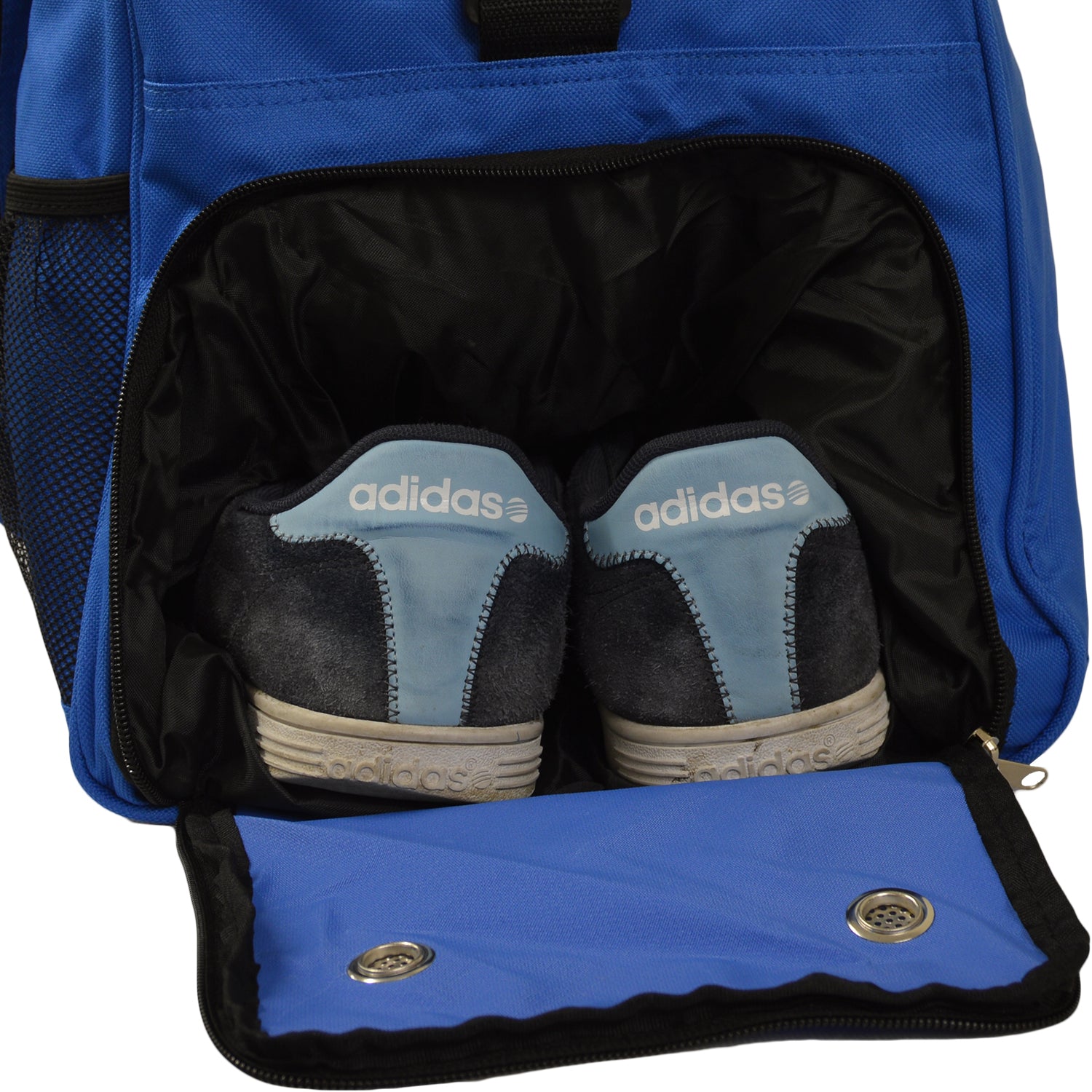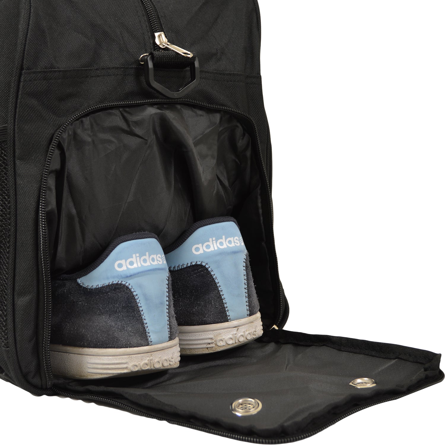 POCKETS – There is a shoe pocket that’s accessible from the outside, zipped front pocket for easy access to smaller items, Adjustable drawstring drinks holder compartment, meshed pockets.
