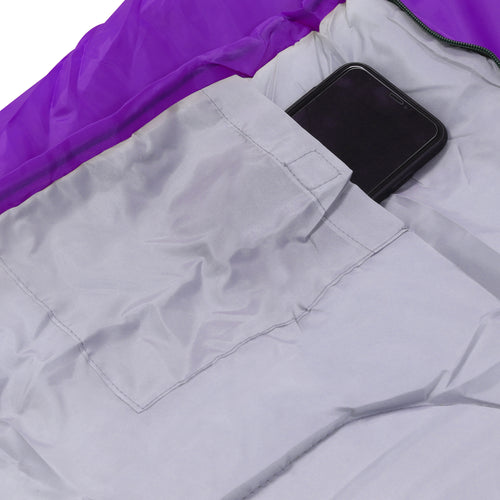FEATURES: Internal storage pocket for phones, keys and more. For extra warmth and comfort the sleeping bag has an adjustable drawstring closure. Has the ability to unzip and be used as a duvet