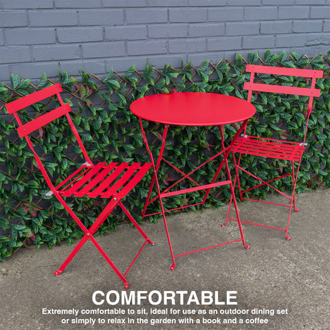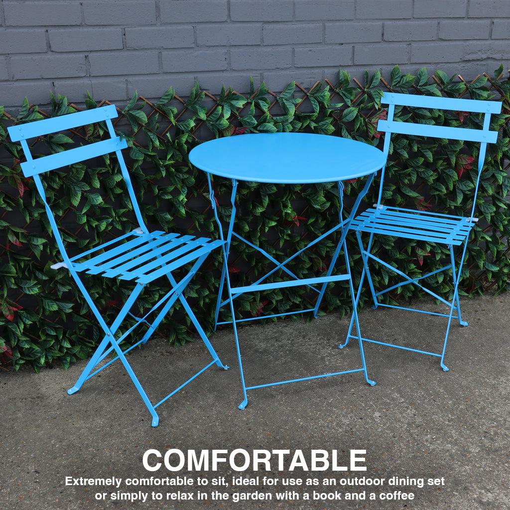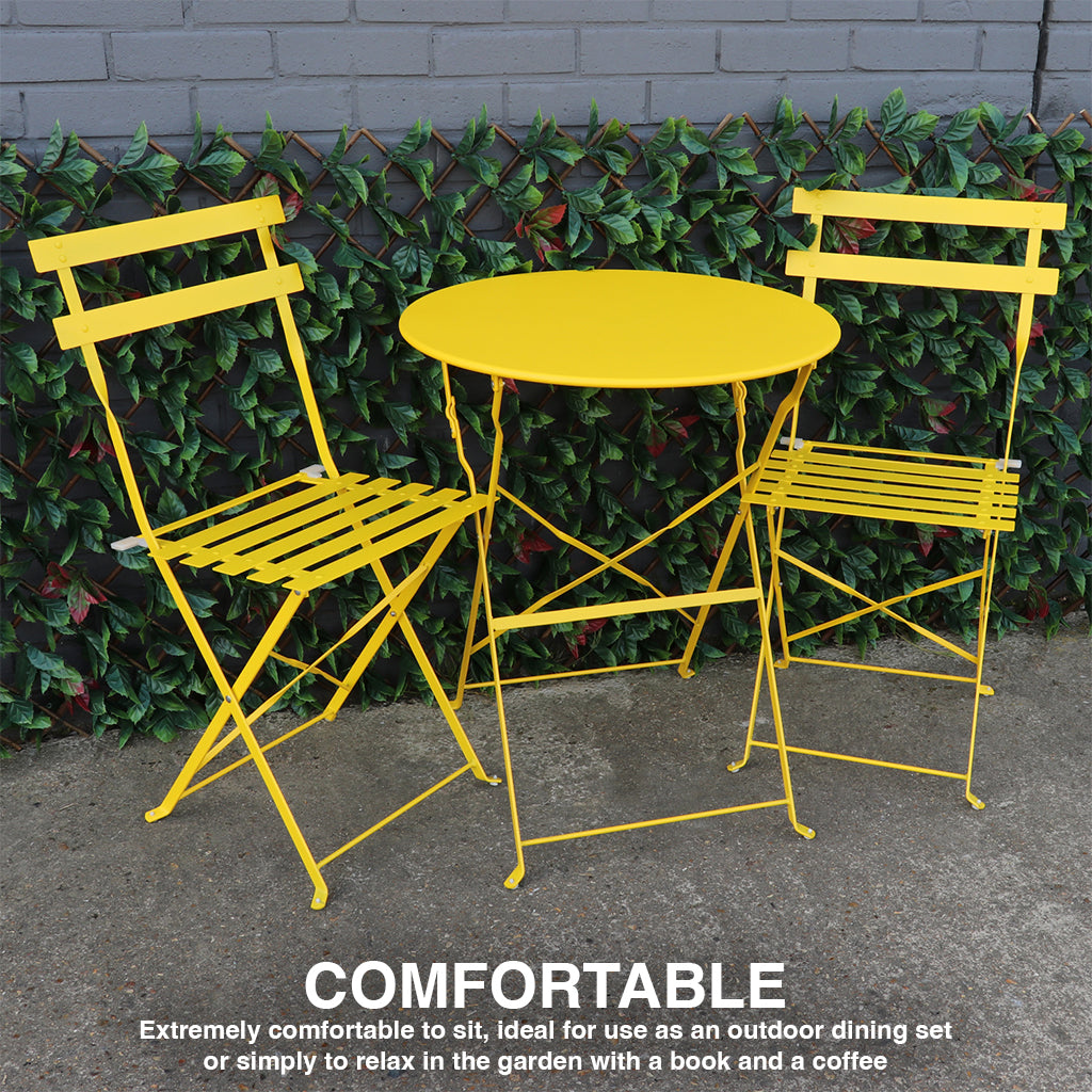 VIBRANT – Available in 6 bold colours you can be sure these bistro dining sets will brighten up any garden, balcony or courtyard