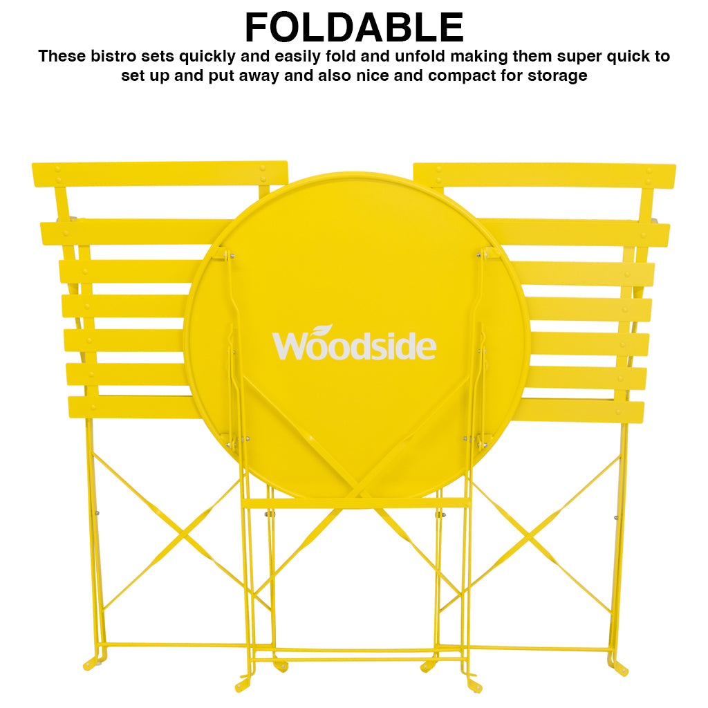 The sky is the limit with the Woodside Aylsham Outdoor Garden Patio Folding Table & Chair Bistro Set, with its 6 colour options available, you’ll surely be able to find something to suit your style and décor. These bright and bubbly Bistro Table & Chair set arrangements deliver unparalleled quality that will leave you satisfied for years to come.
