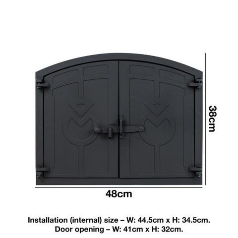 SIZING – External size - W: 48cm x H: 38cm. Installation (internal) size – W: 44.5cm x H: 34.5cm. Door opening – W: 41cm x H: 32cm