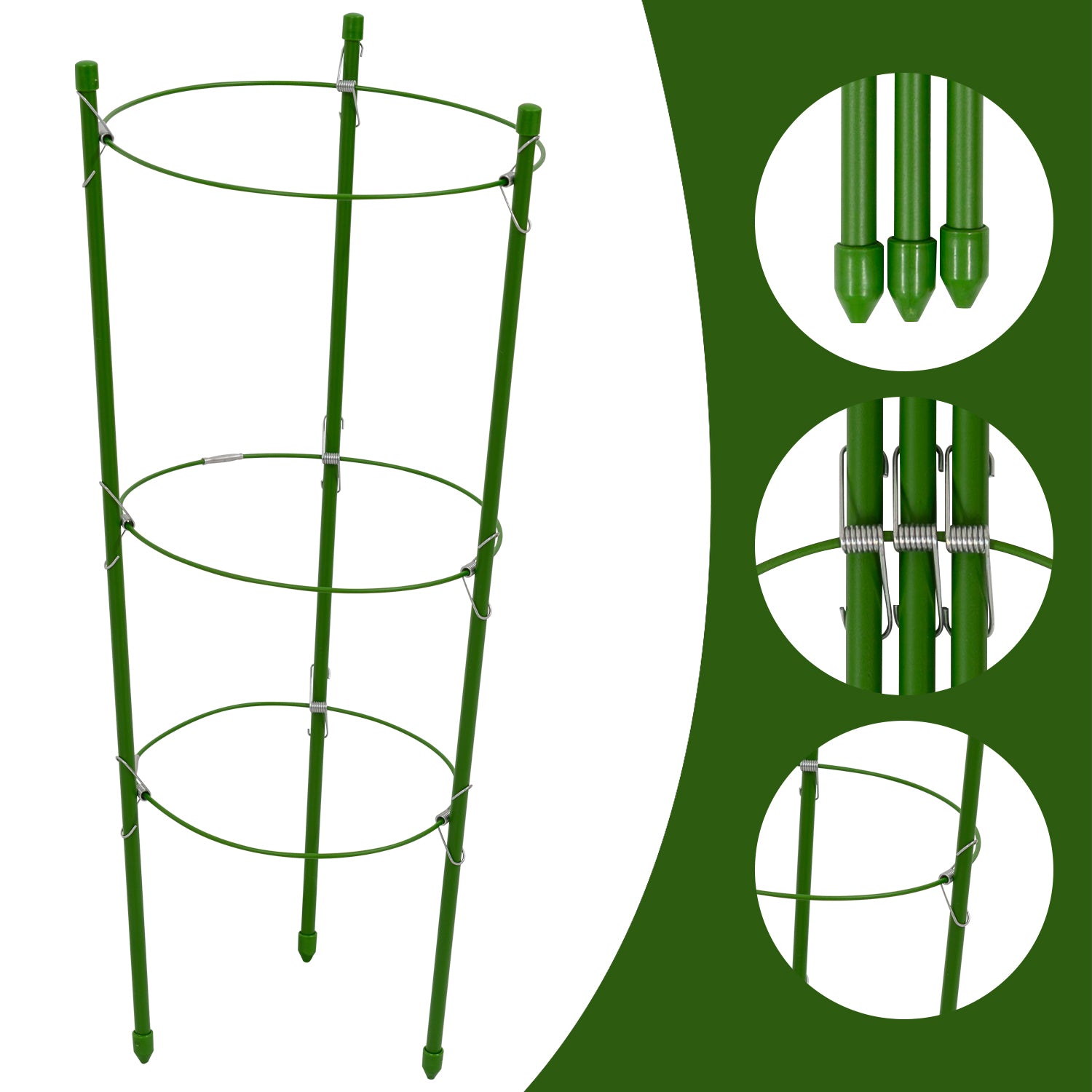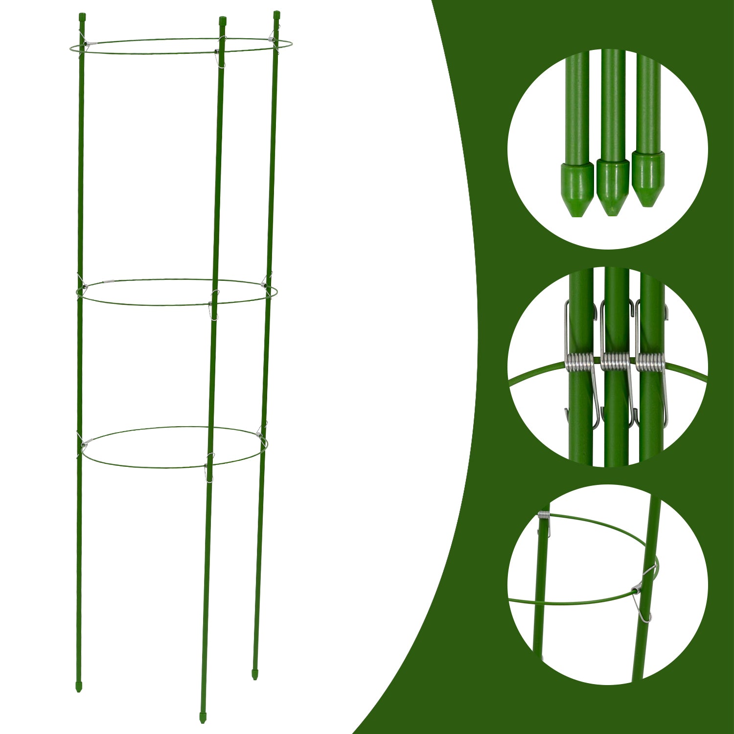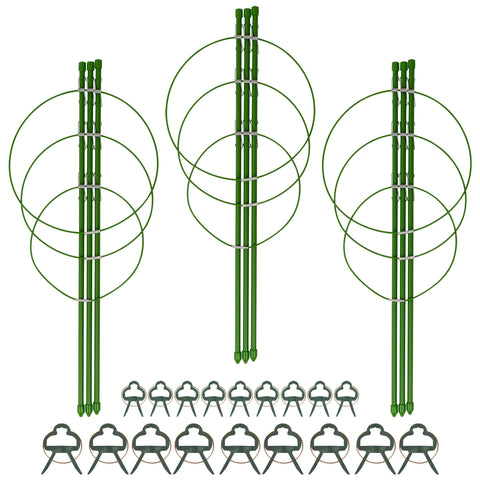 Made from durable PE-coated steel wire, the supports are strong enough to withstand outdoor conditions while blending seamlessly into your garden. The kit also includes two sizes of plant clips (18 total) to secure stems gently without causing damage. Quick and easy to set up, simply insert the stakes into the ground and adjust the rings as your plants flourish.