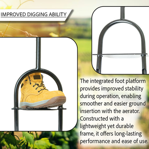 Effortless Ground Penetration β Foot stand provides added leverage so you can drive the corer deep into the lawn with minimal effort.